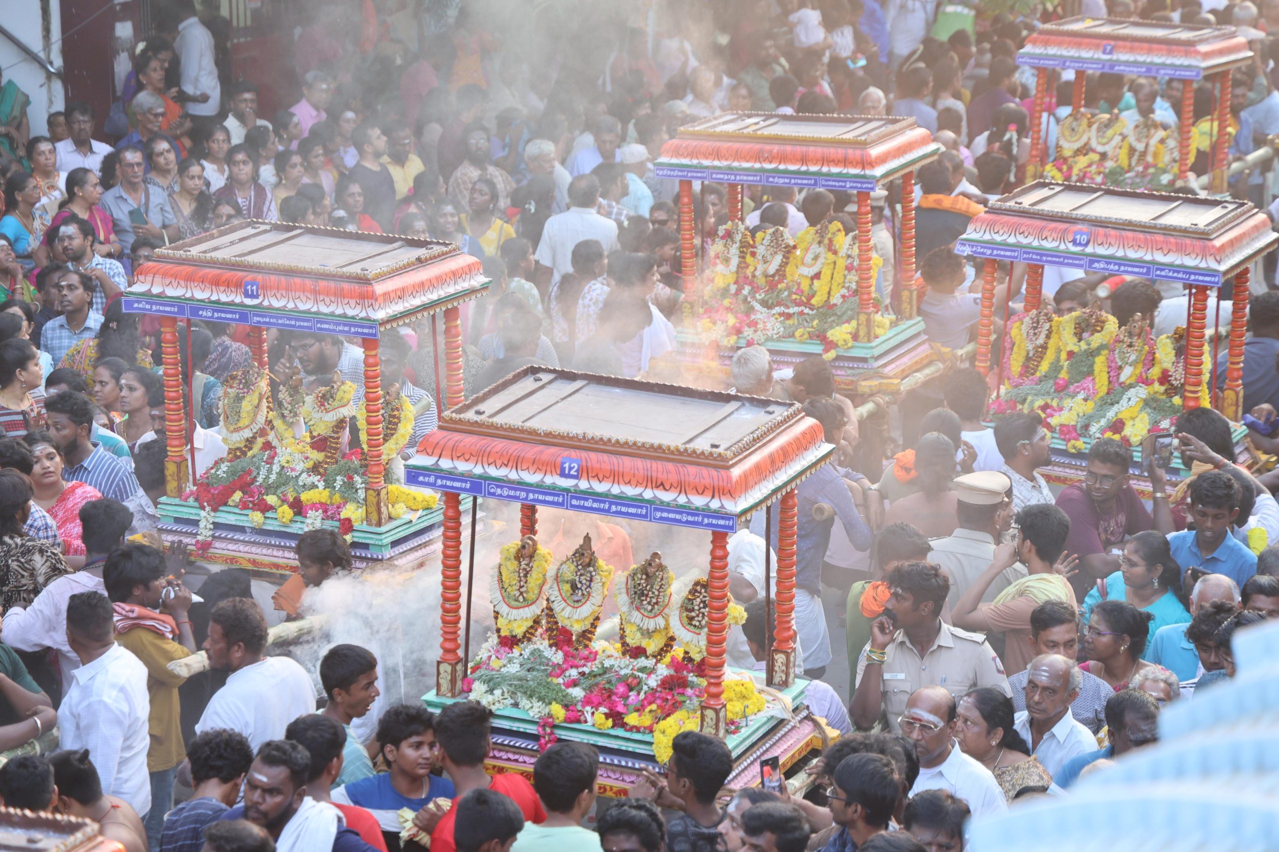 The nayanmars are the stars of the Panguni festival’s arabathumoovar procession of Sri Kapali Temple. The 63 saints.