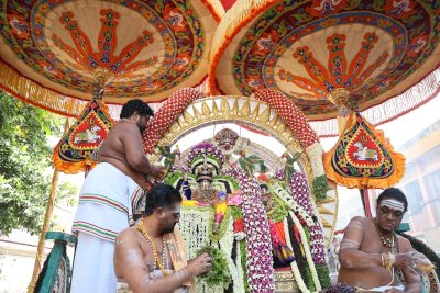 On March 24 morning, as the lord was taken out in the surya vahanam, folk dancers and musicians set the celebration tone.
