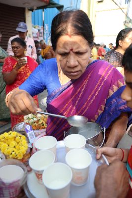 Then there are seniors who bring along juice or buttermilk or water and distribute it to people present in the daytime procession – temperatures climb to 30 degrees by 9 a.m.