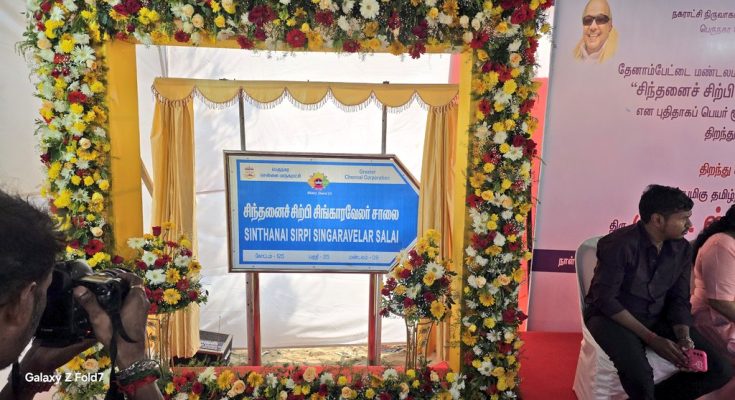 Sindhanai Sirpi Singaravelar Salai – this is the new name of Loop Road in San Thome.
