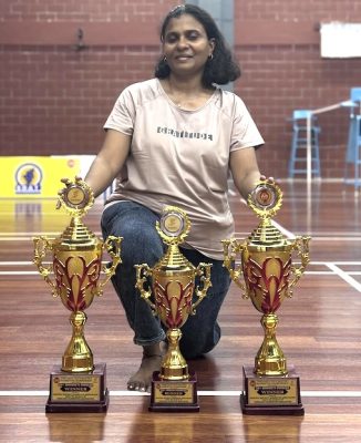 Sumathy, along with seasoned veteran players Vijay Kariyakar and Suresh Kariyakar, also conducts badminton training for beginners and advanced players at Regal Badminton Academy, partnered with Shuttler Badminton Court, near Citi Center mall.