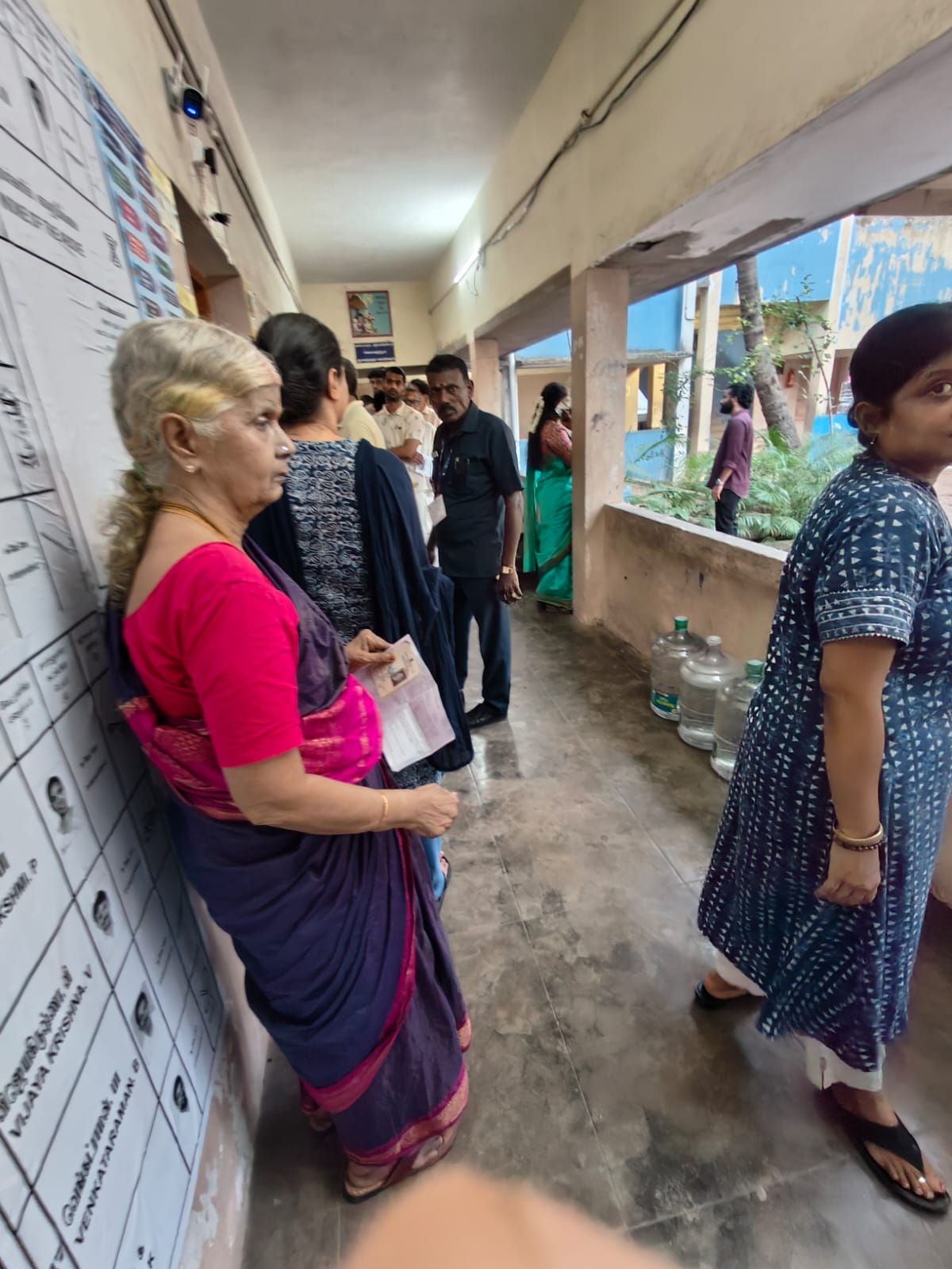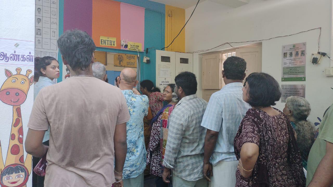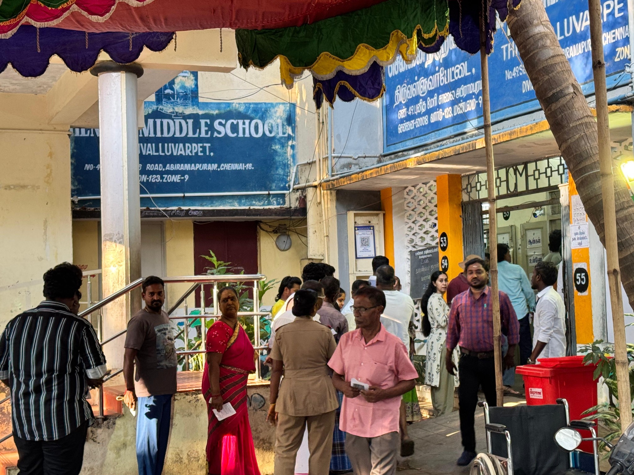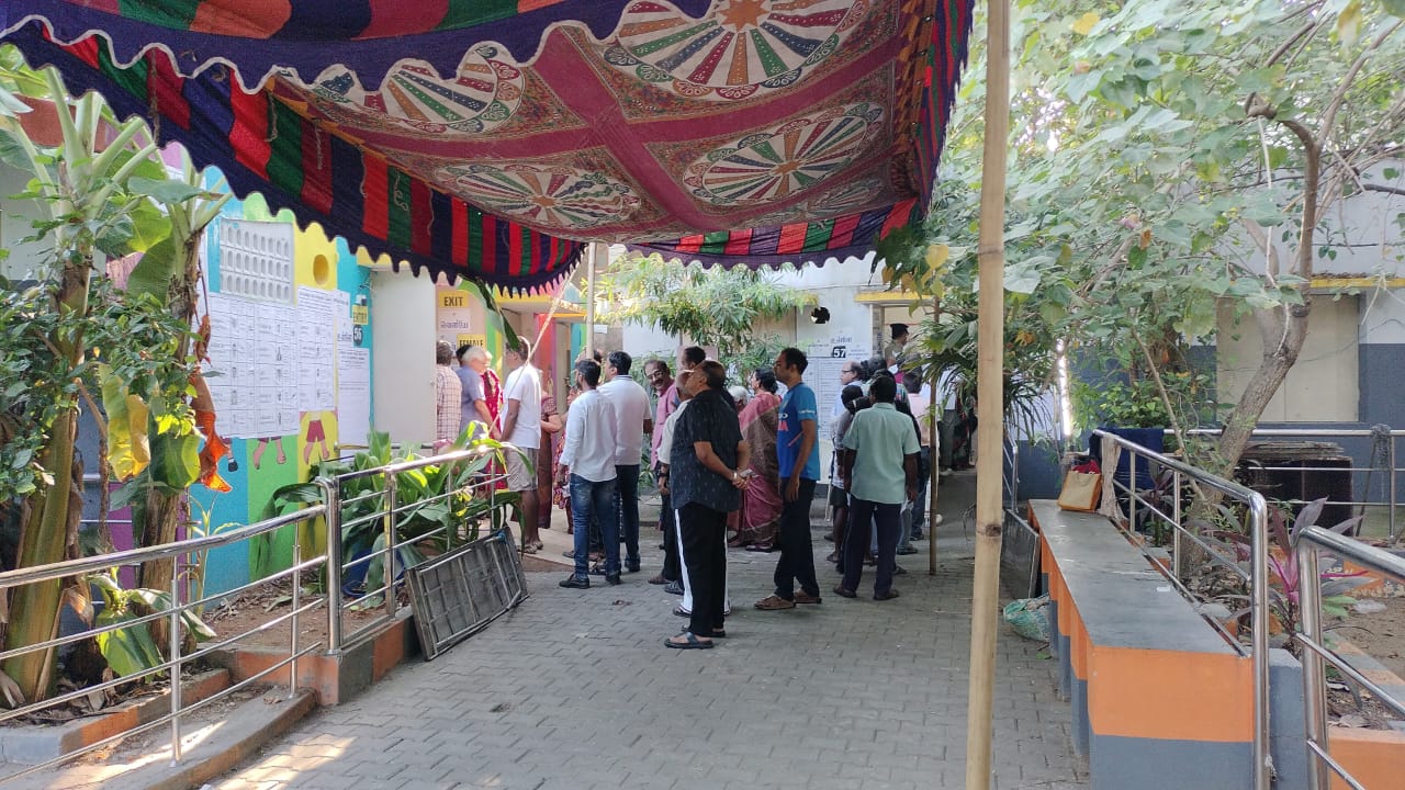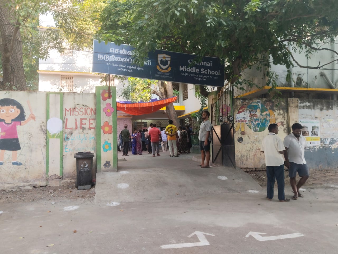 Queues formed before 7 am at the booths in the campus of Chennai Middle School, St Marys Road. Slow start here.