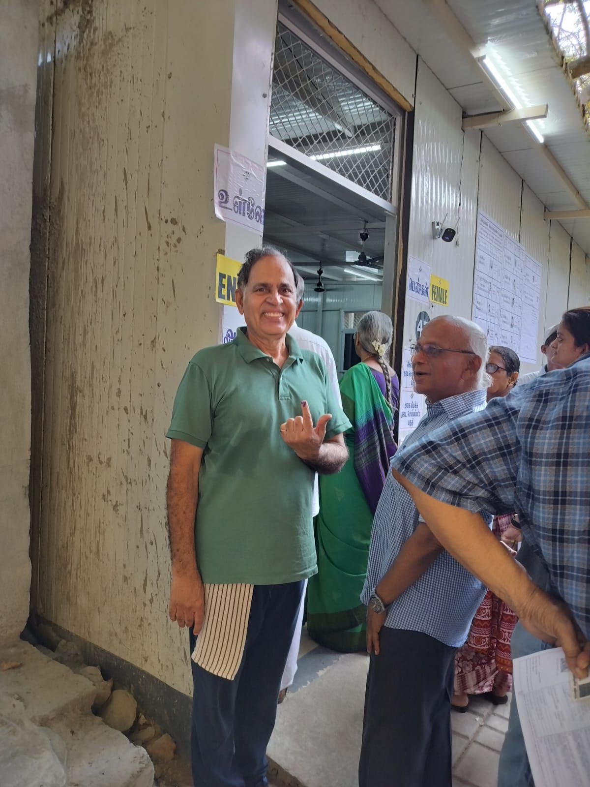 Sankar was the first in the Q for males to cast his vote; he is seen in the photo.