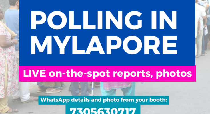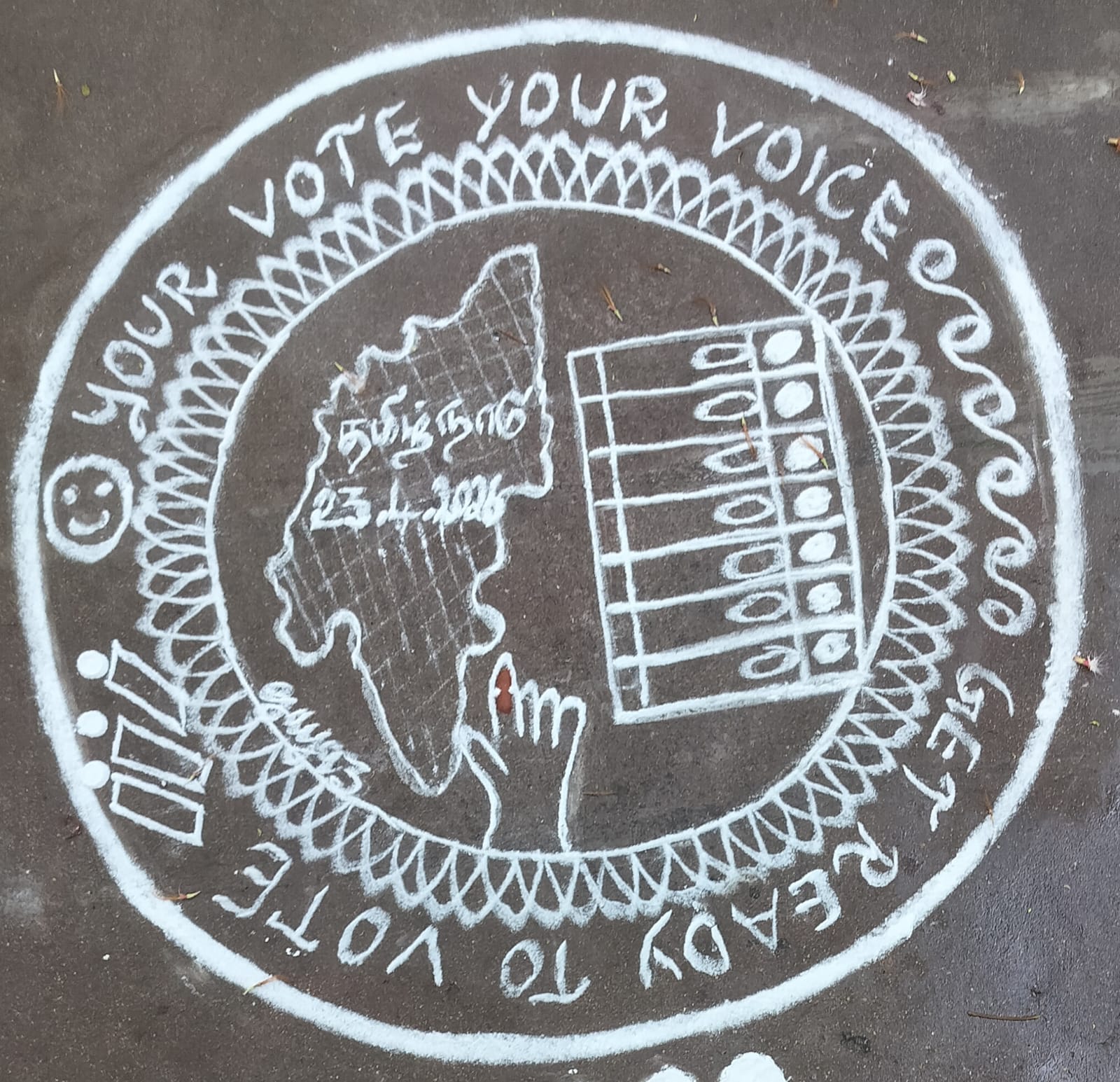 Kolam expert and scholar Gayathri Sankaranarayan of CIT Colony shared this photo of her theme kolam designed at her doorstep; with a message for Voters in it. Like it? Did you see any themed kolams this morning? Share a photo.