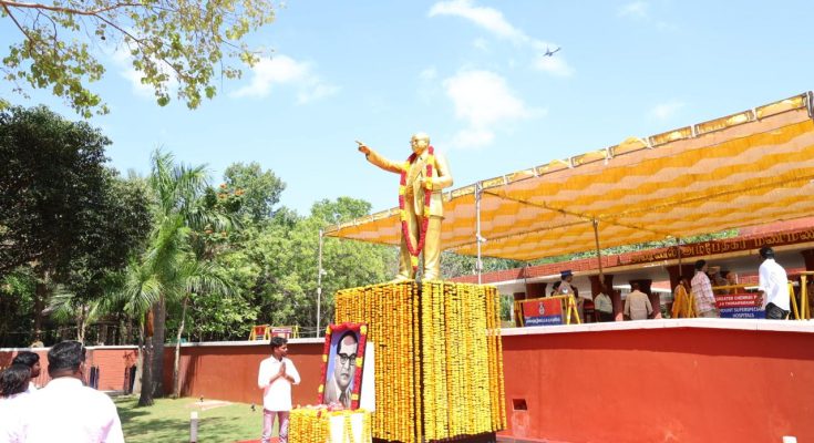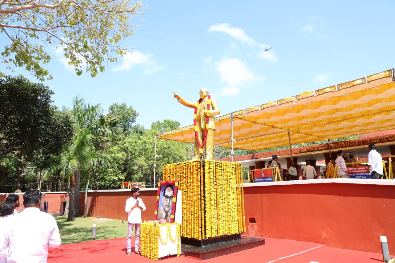 Scores of people, from political parties and groups and individuals streamed into the Dr Ambedkar Mani Mantapam in MRC Nagar zone of R A Puram this April 14 to mark his birth anniversary.