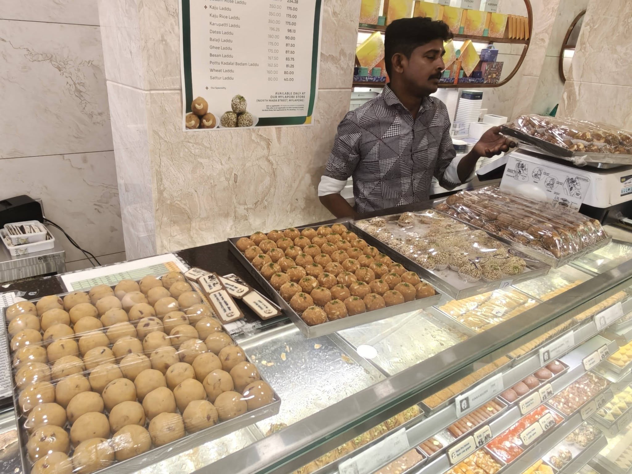 Truck load of ladoos arrived at Shree Anandhaas store on North Mada Street today to serve people who want to make the best of their offer on their ladoos variety here.