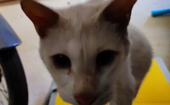 A adult white male cat, turned up at my residence on Justice Sundaram last month, during the heavy rains meowing it’s heart away, looking for food. We were feeding it …