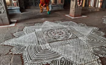 For the Panguni fest, Uma Ganesh designs large kolams inside Sri Kapali Temple
