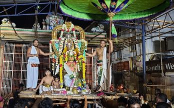 Sri Kesava Perumal atop Hanumantha vahanam in front of Sri Kapali Temple